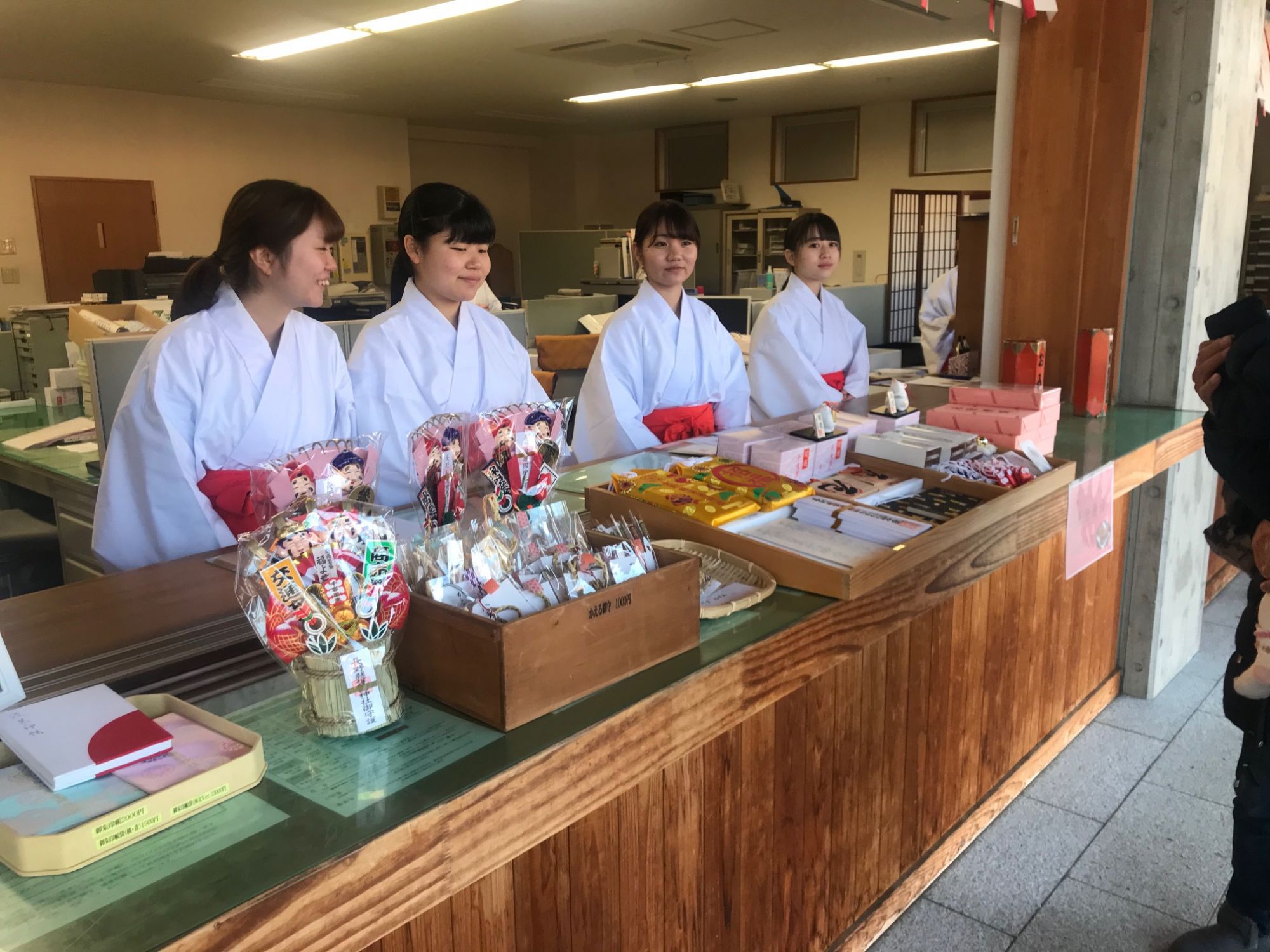 Обереги и традиционные сладости с эмблемой храма продают юные девушки- ученицы старших классов, которые, как правило , не имеют никакого отношения к религии, а просто подрабатывают на зимних каникулах.