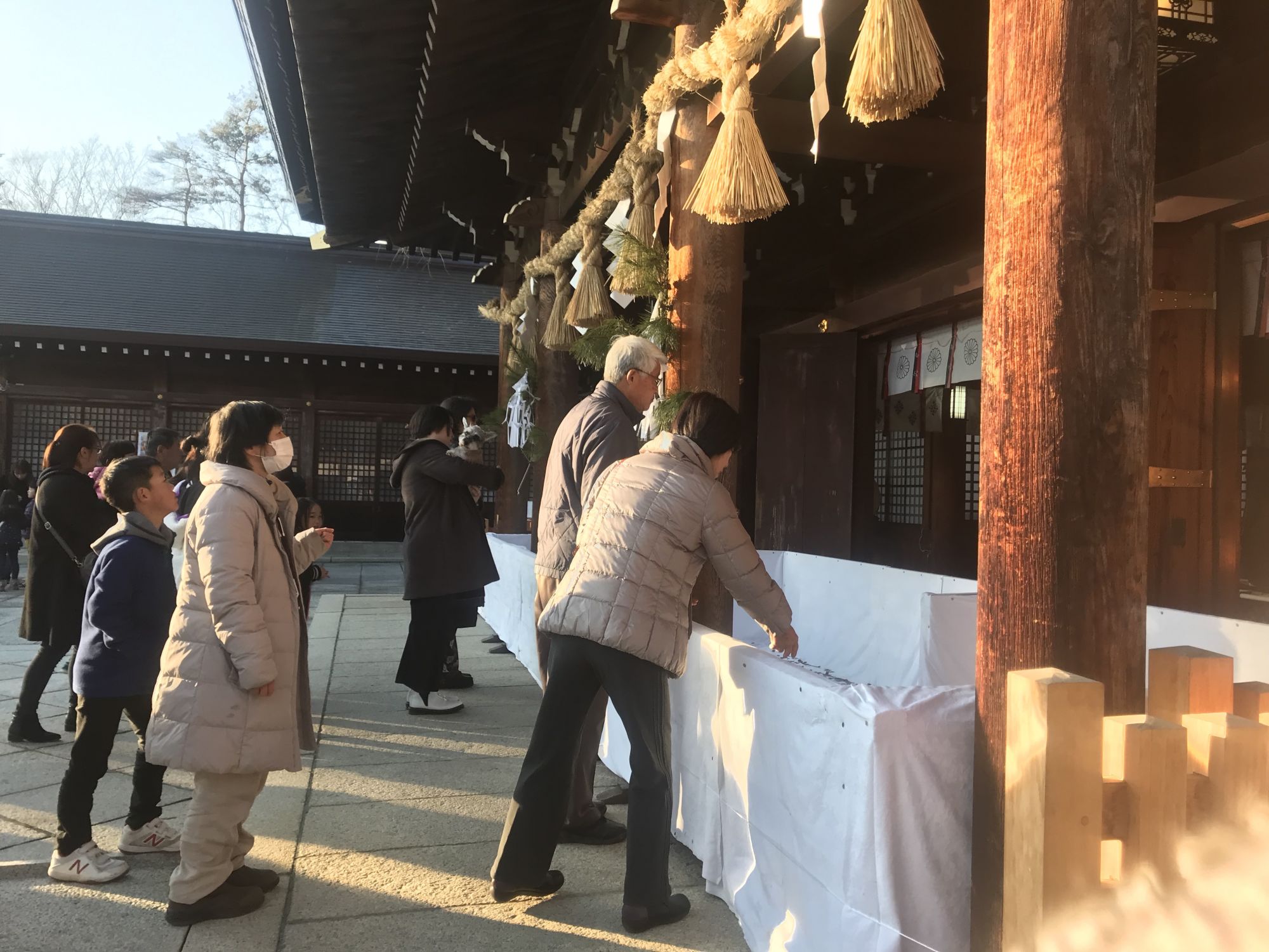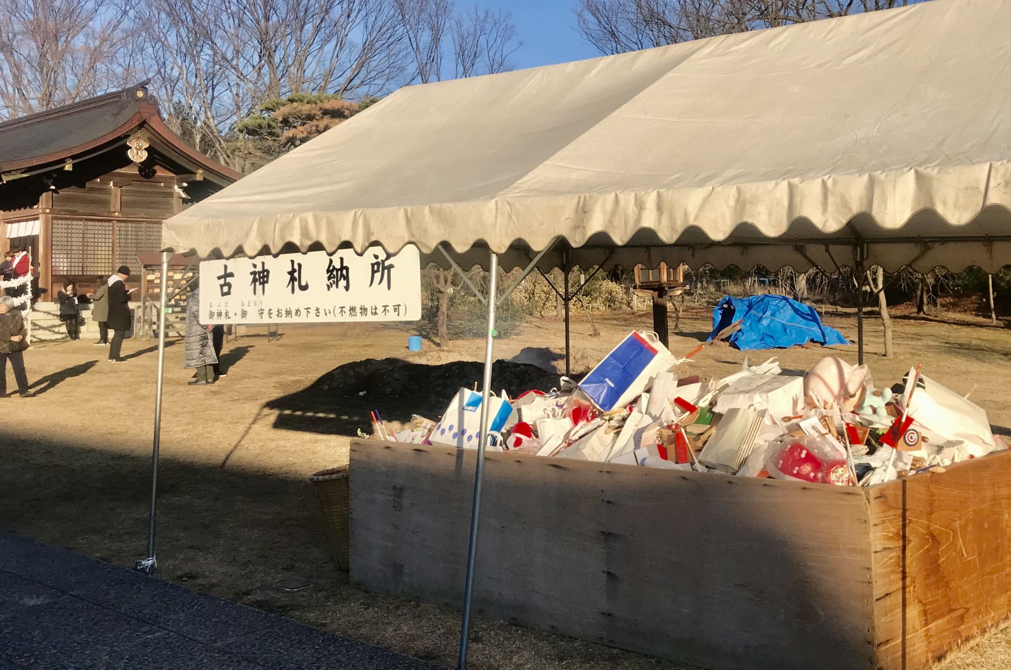 В дни Хацумоуде в храм можно принести прошлогодние обереги , а так же дарума – шарообразное божество, которому дорисовывают глаз после исполнения загаданного желания. Отработавшие своё сжигают здесь же, в специально вырытой яме под молитвы служителей храма.