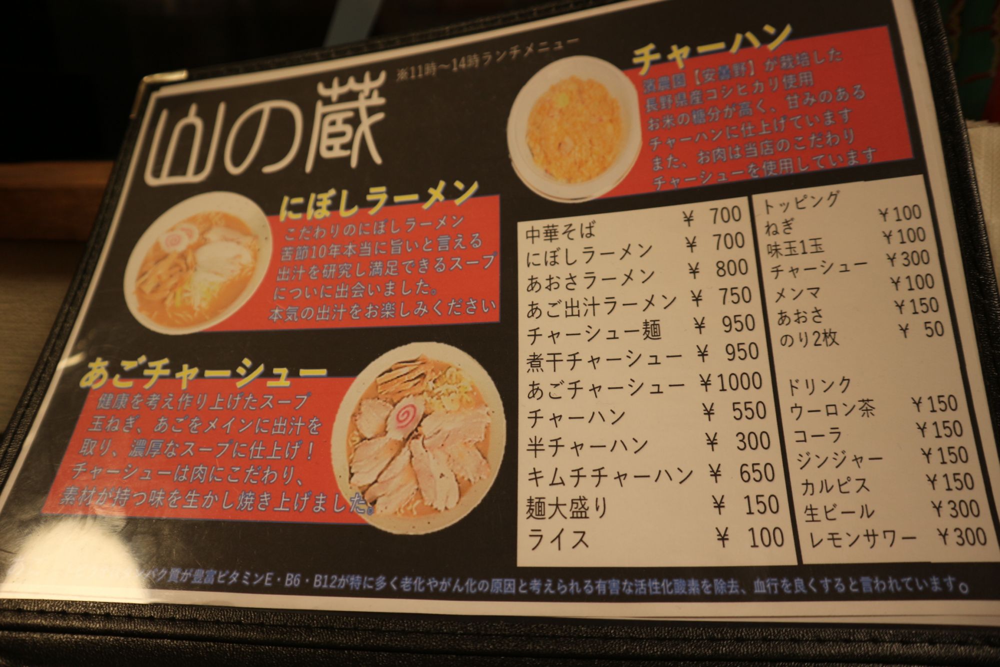 昼間は、ラーメン屋さん、夜はラーメン+居酒屋