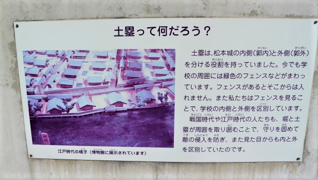土塁は、松本城の内側(郭内)と外側(郭外)を分ける役割を持っていました。