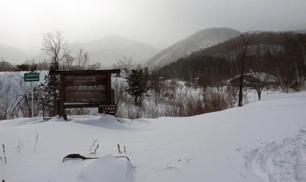 Another popular spot is snowshoeing around the Ichinose area, which is more open and flat. Here you can walk over a frozen pond and see the mountains towering above.