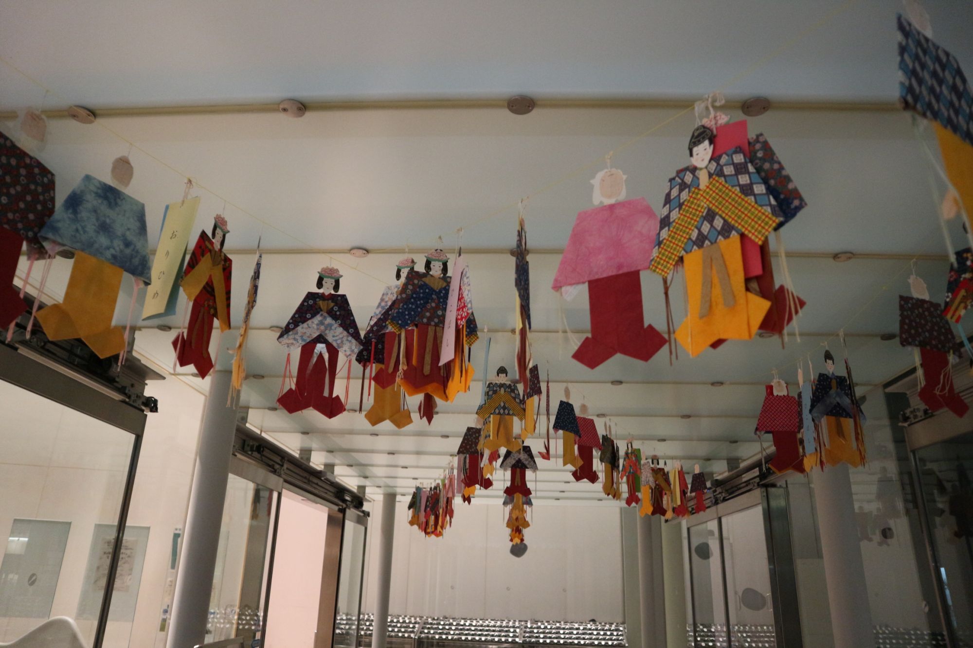 入口の天井に地元の女将さん会で作った七夕人形が吊るされています。