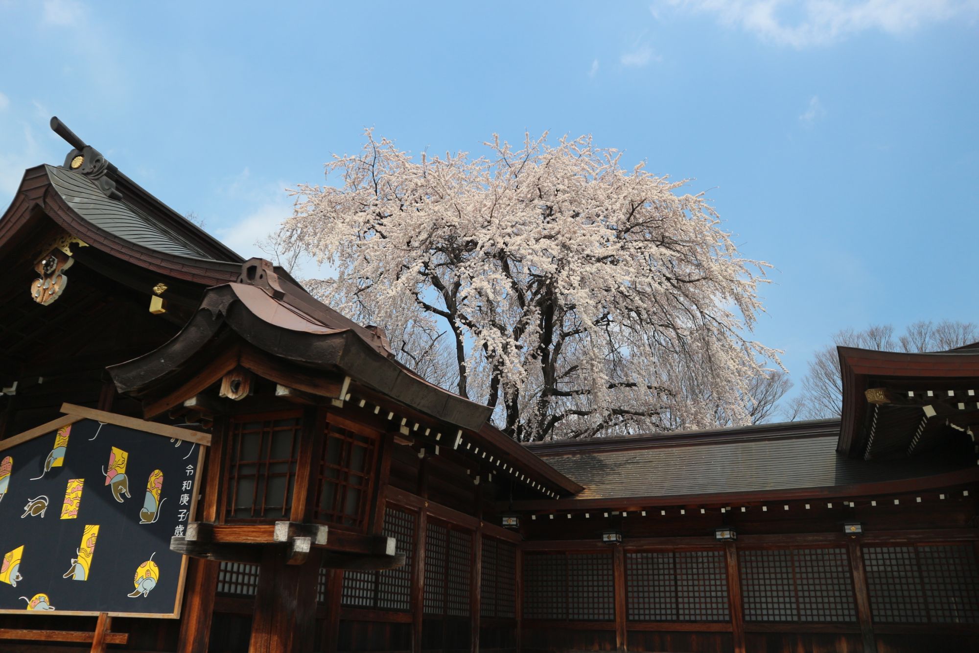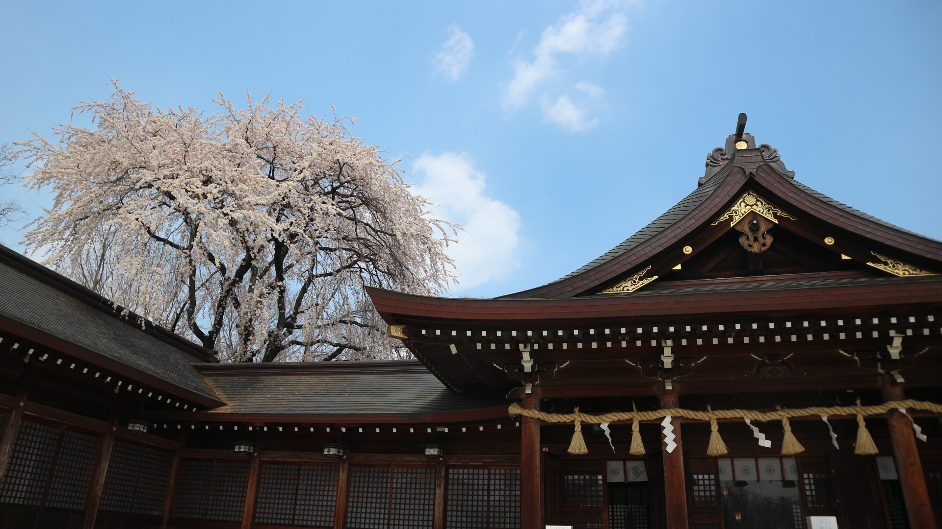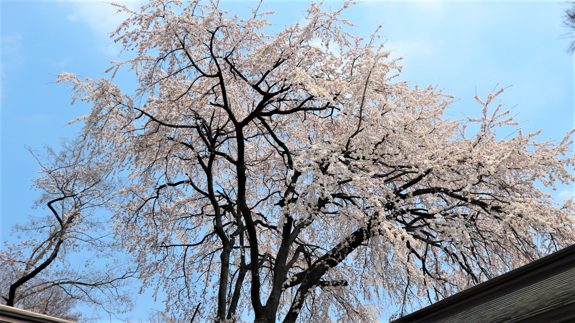 特に目を惹いたのは、御拝殿の裏の咲く大きな枝垂れ桜です。
