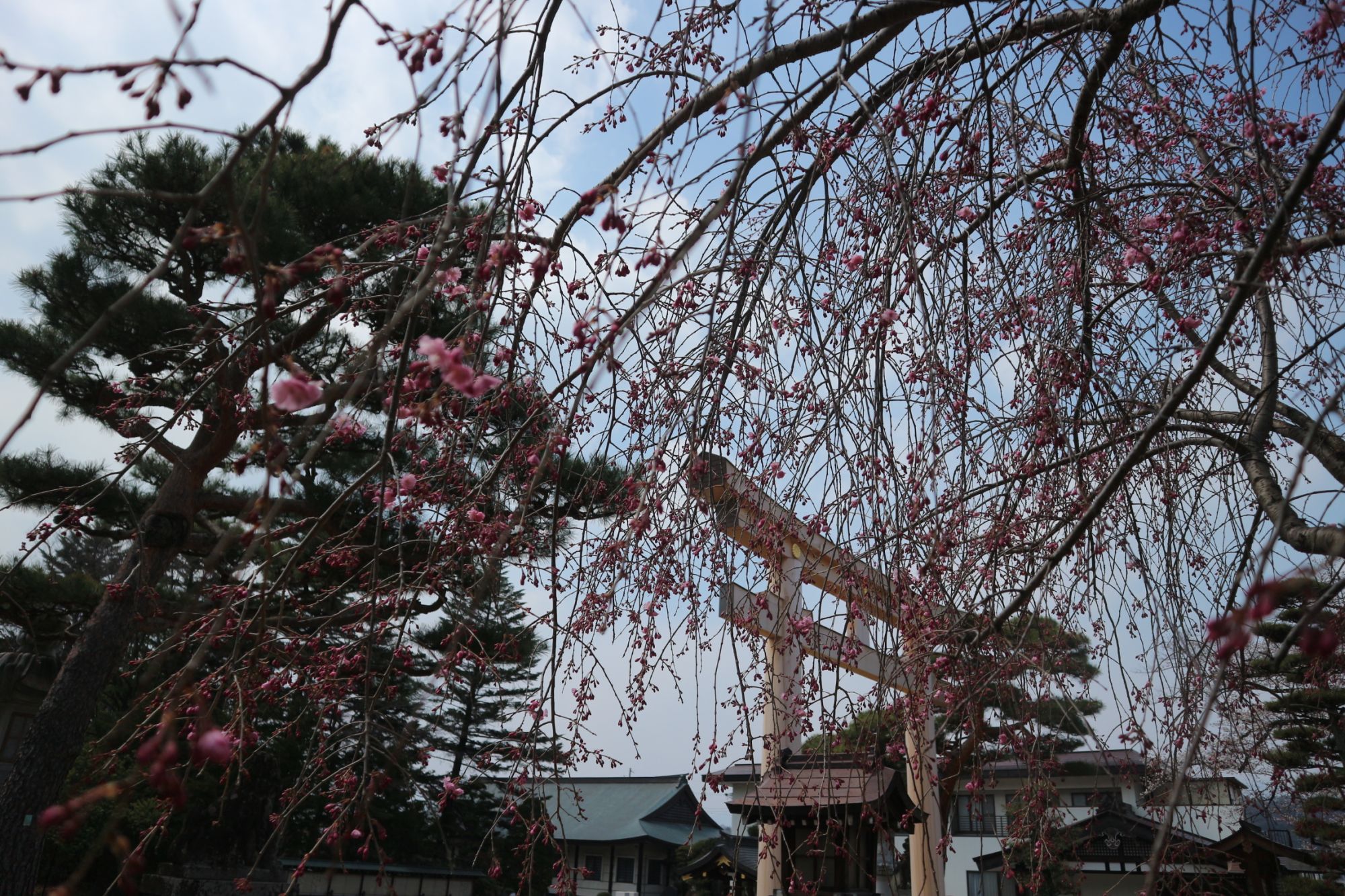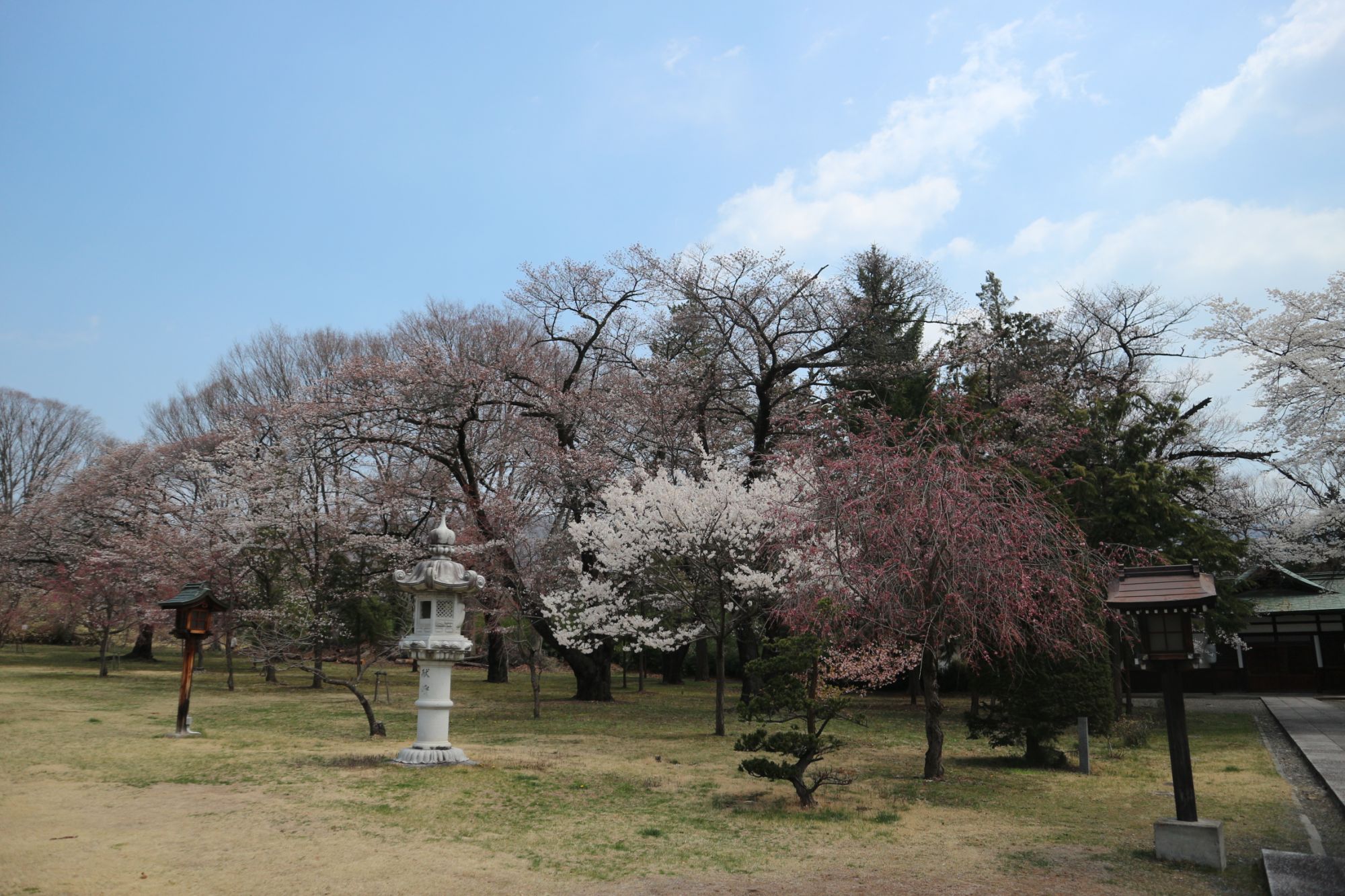 広い境内には、数種類の桜の木が花を咲かせていました。