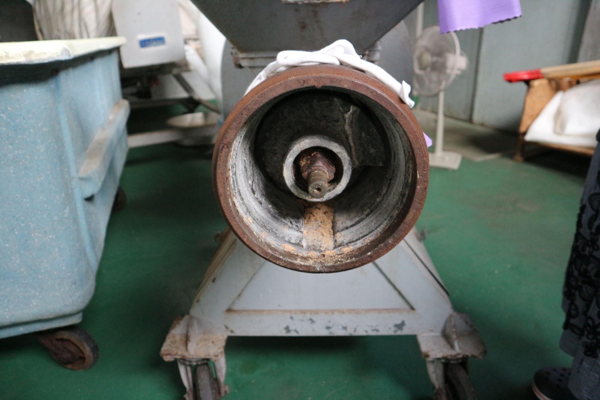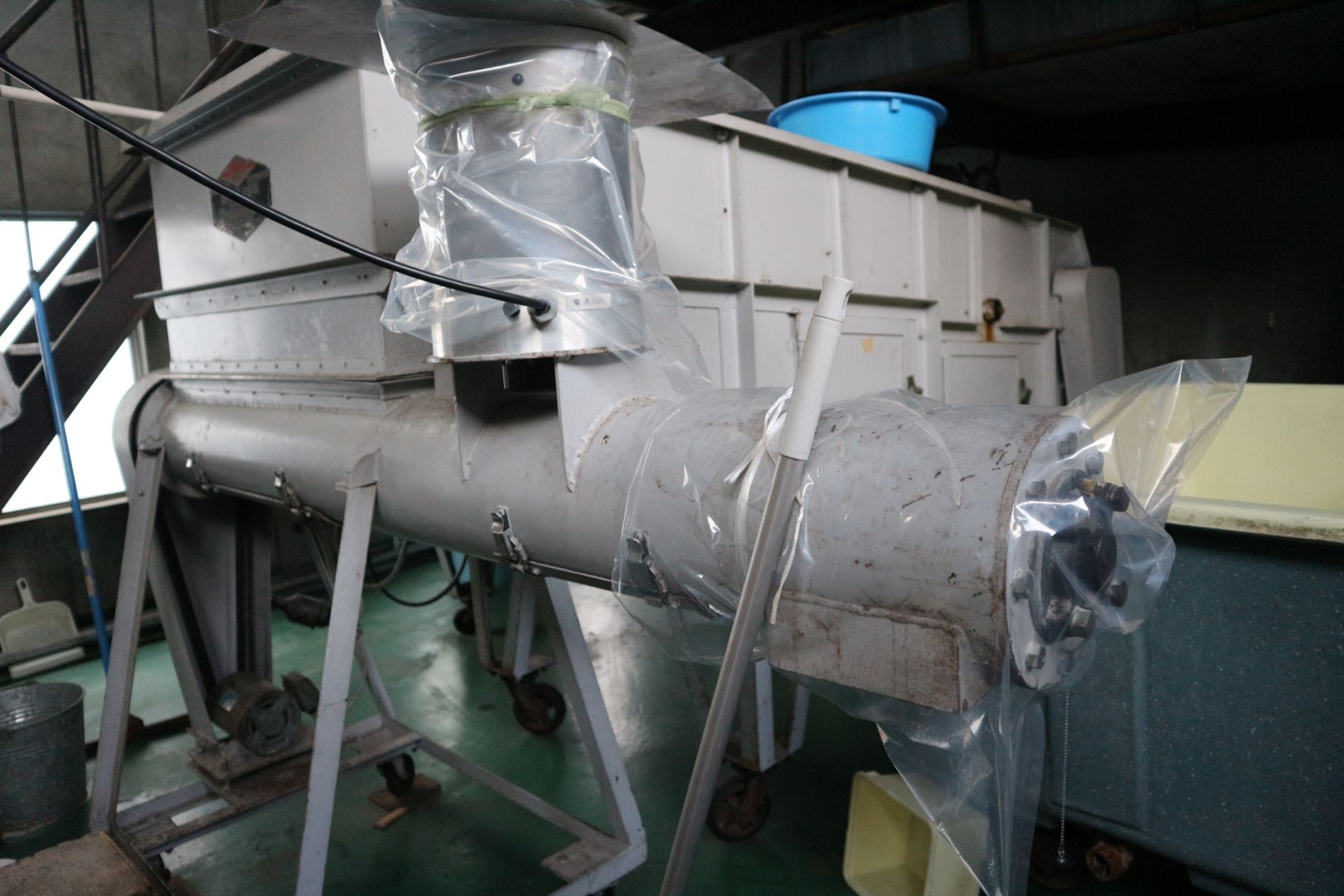 こちらの装置は、1回300キロの米を炊いて蒸したものをベルトコンベアに乗せて扇風機を周りに置いて瞬時に冷まします。