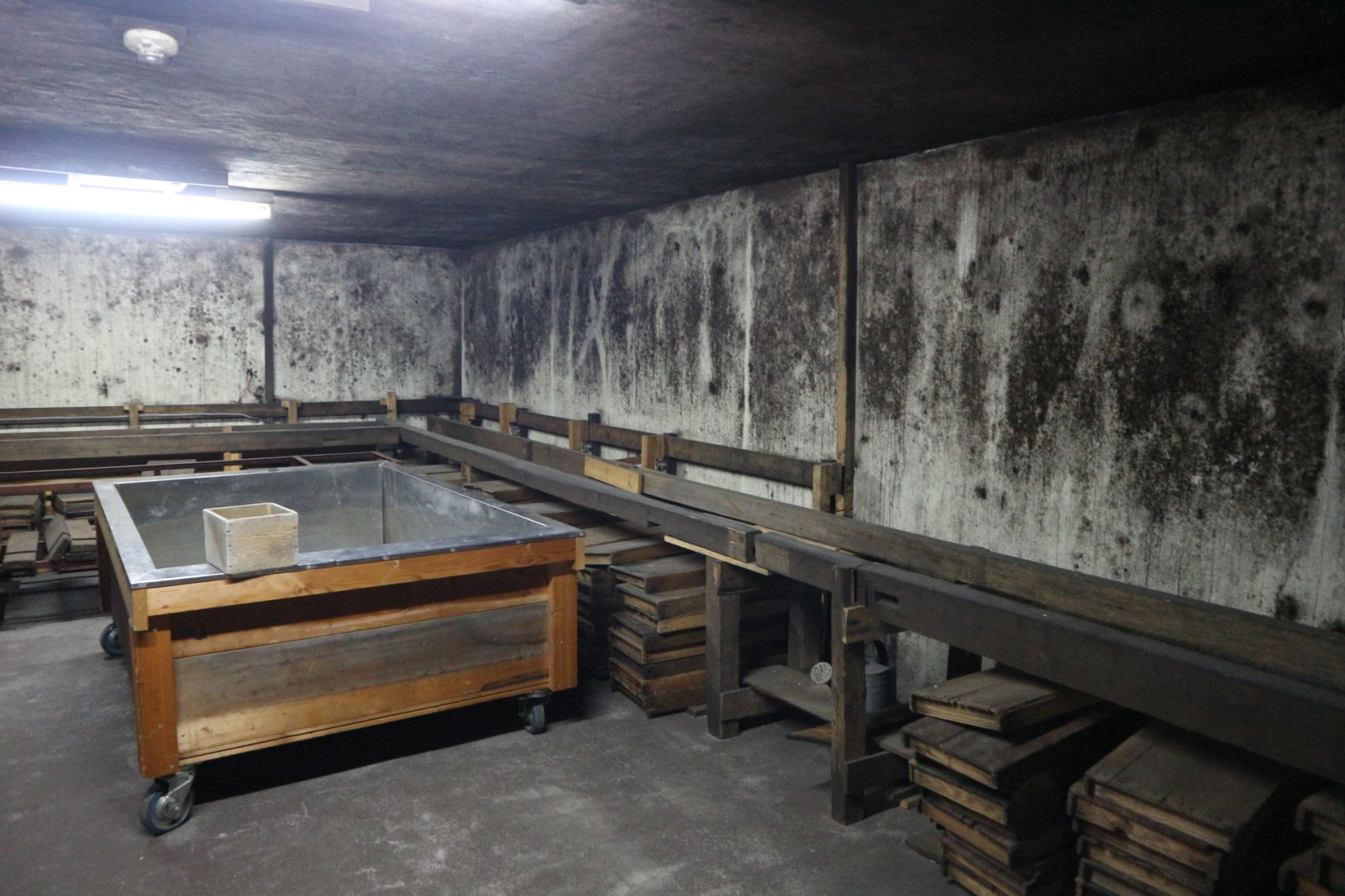 冷ました米を速やかに室に運び、すぐに作業に入ります。2日間この室で熟成させます。