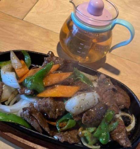 真是应有尽有,不知挑啥好了,最后点了个铁板牛肉、麻辣烫。