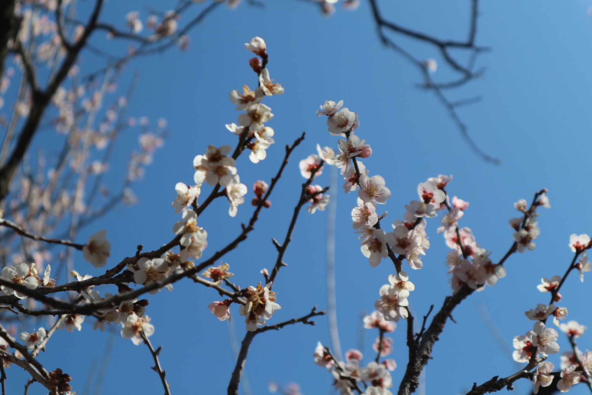 桜は、まだ硬いつぼみでしたが、今日の陽気で膨らんだかもしれません。