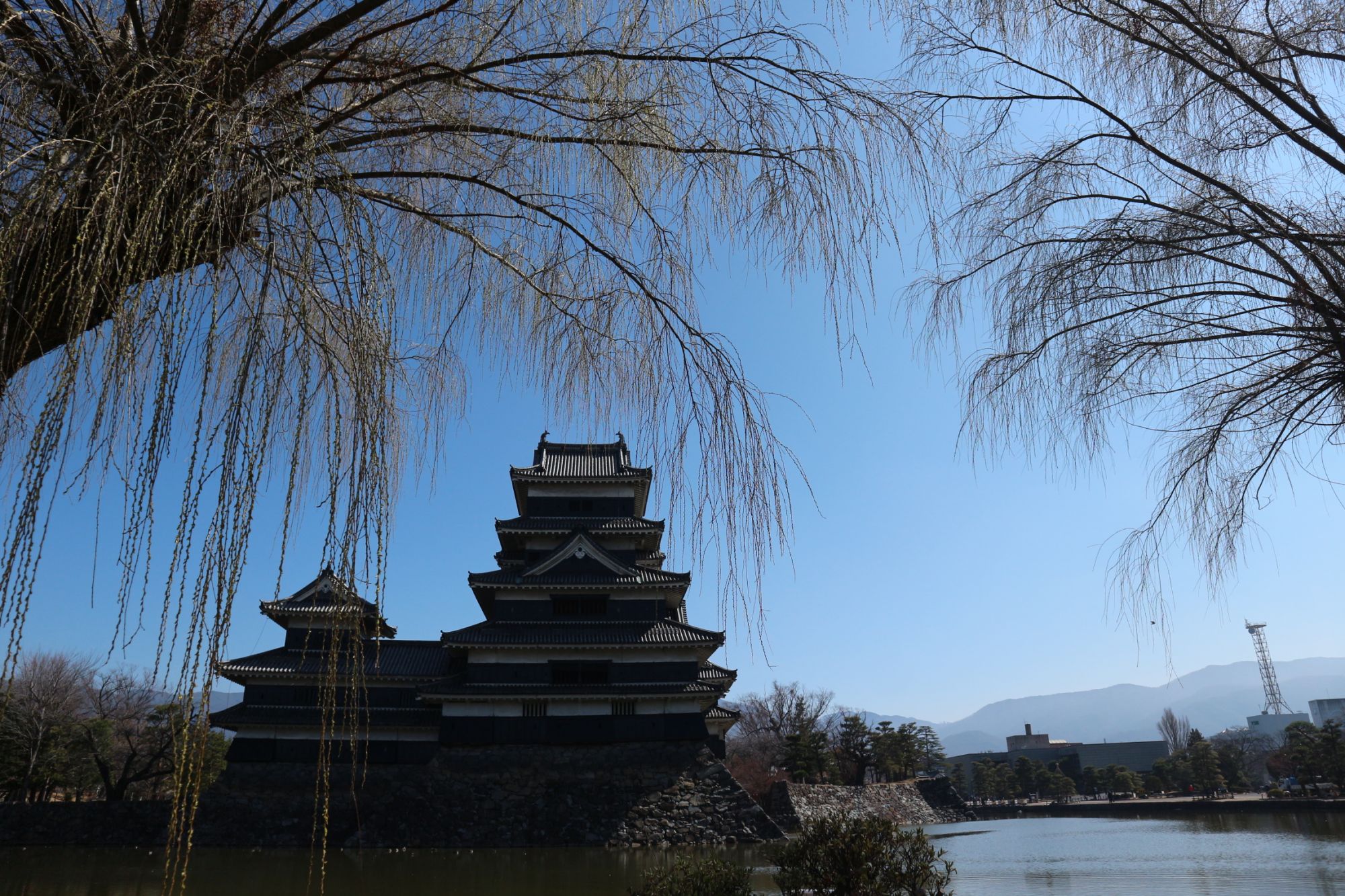 松本スケッチ3月 月・城・梅・桜はまだまだ硬いつぼみ