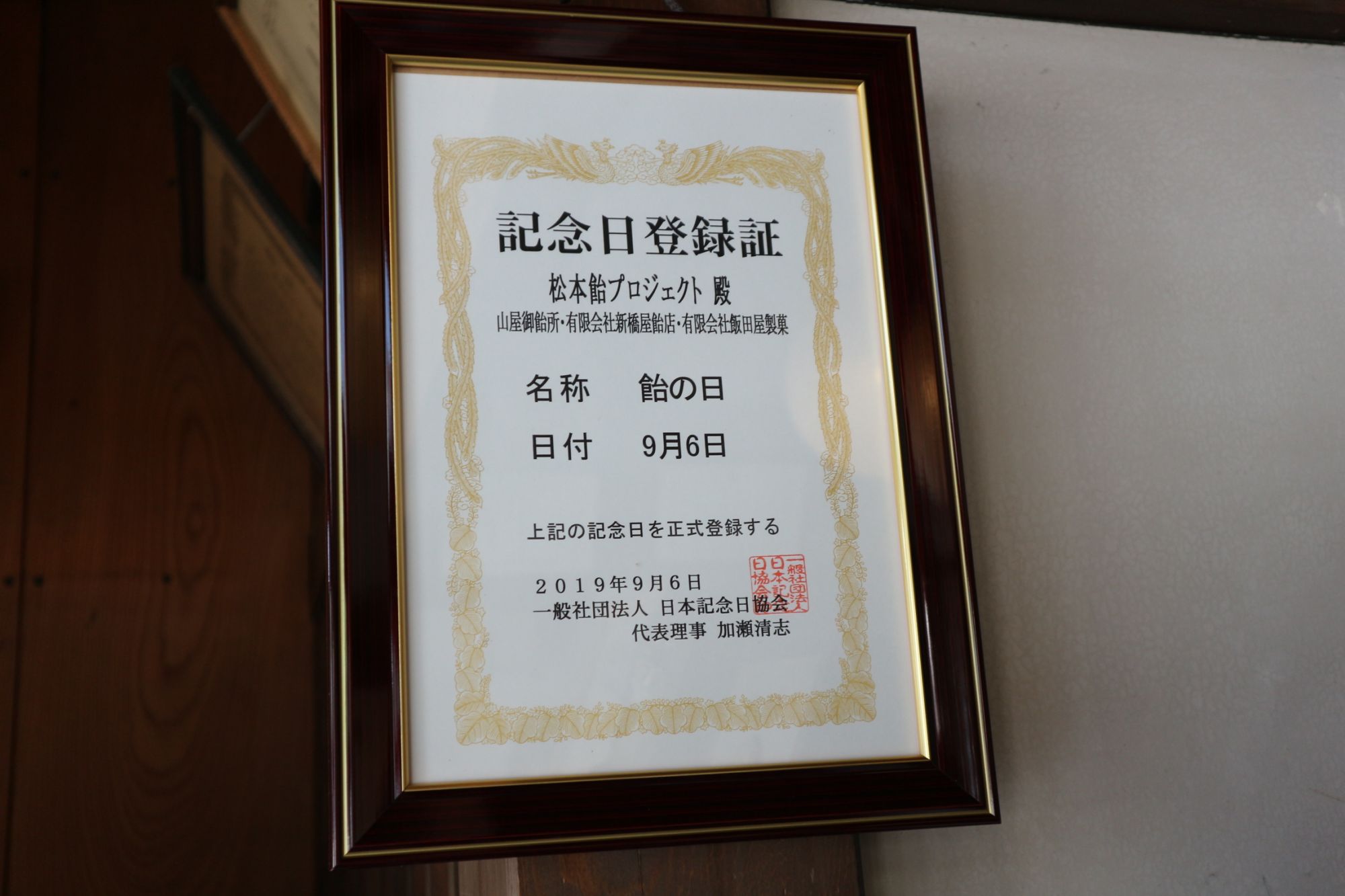 その中で2019年9月6日を「飴の日記念日」に登録認定されました。「松本あめさんぽ2019」というイベントも開催しました。