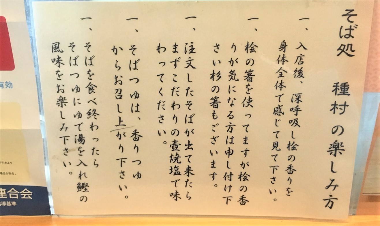 カウンターに置かれた「そば処種村」の楽しみ方