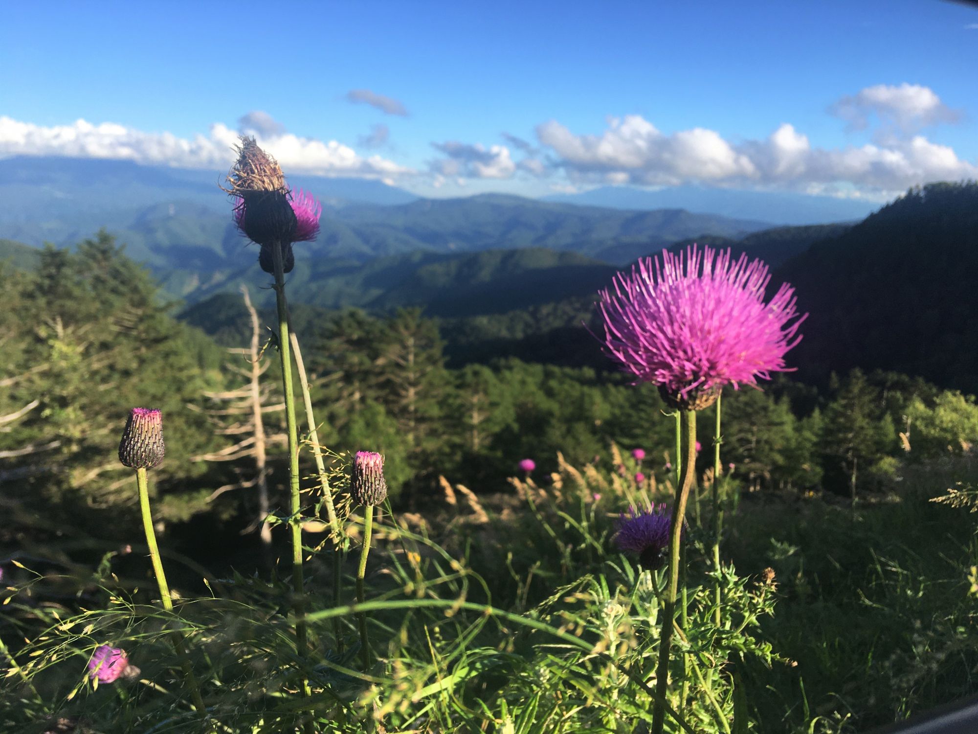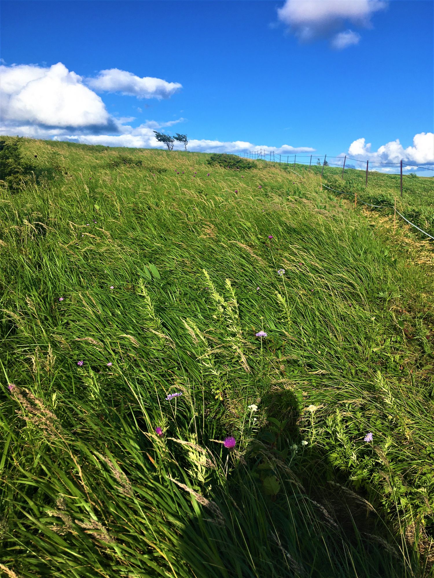 Das Hochland Utsukushi-ga-hara, übersetzt die schönen Felder, lockt vor allem in den Sommermonaten mit etwas Kühle in 2,000m Höhe und mit einem 360° Panorama-Blick, der bei klarer Sicht sogar bis zum Berg Fuji reicht. Das Plateau befindet sich in der Mitte der Nordalpen und soll vor ca. 2. Millionen Jahren entstanden sein. Das erste was ich sehe, sind schwarz-weiße Bilderbuch-Kühe, die hier Urlaub machen, weil es im Tal zu warm ist.