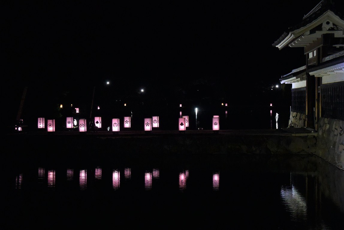 Ein Highlight ist die Abendbeleuchtung während der Kirschblüte. 8 Tage lang ab Beginn der Kirschblüte werden die Kirschbäume entlang des Burggrabens beleuchtet.