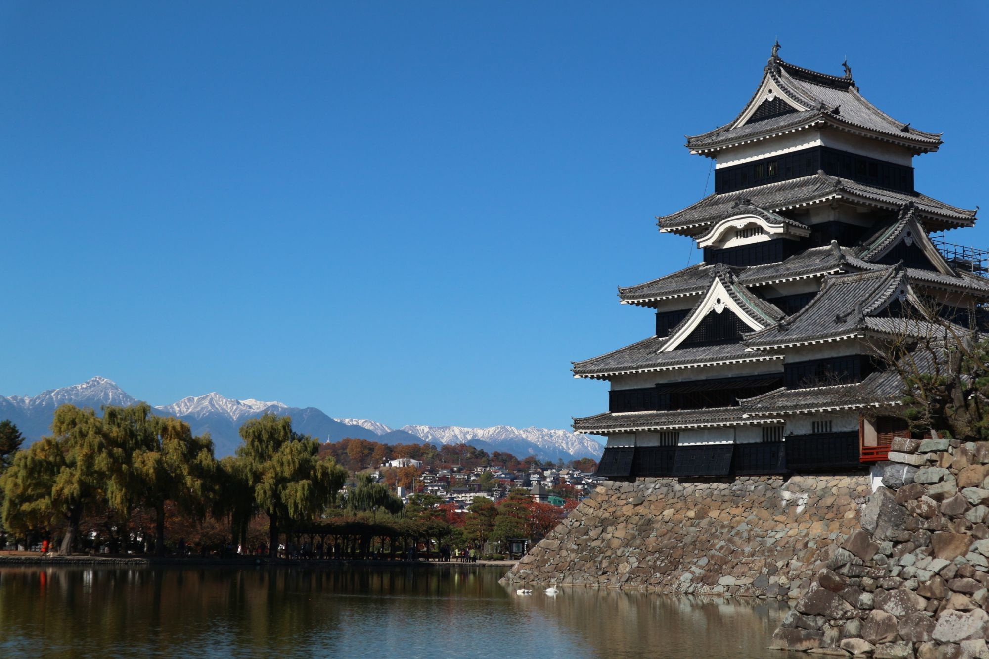 松本城公園周辺紅葉情報 朝&月夜 紅葉 国宝松本城 神社・仏閣 Sat, Nov 16, 2019 ♥42 11月15日(金) 秋晴れの1日 国宝松本城 周辺も紅葉が見頃です! この日は、朝から北アルプスが綺麗に見えていました。 松本神社の紅葉も見頃です! 月夜の松本城 紅葉の紅い葉の隙間から18夜のお月さまが見えました。