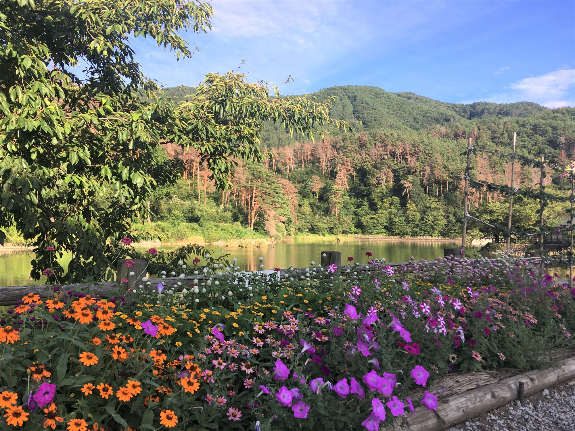 Im Frühling ist die Anlage ein beliebter Spot für die Kirschblüte, im Sommer für die bunte Blumenpracht, im Herbst für die Herbstfärbung und im Winter für die klare Sicht auf die Alpen.