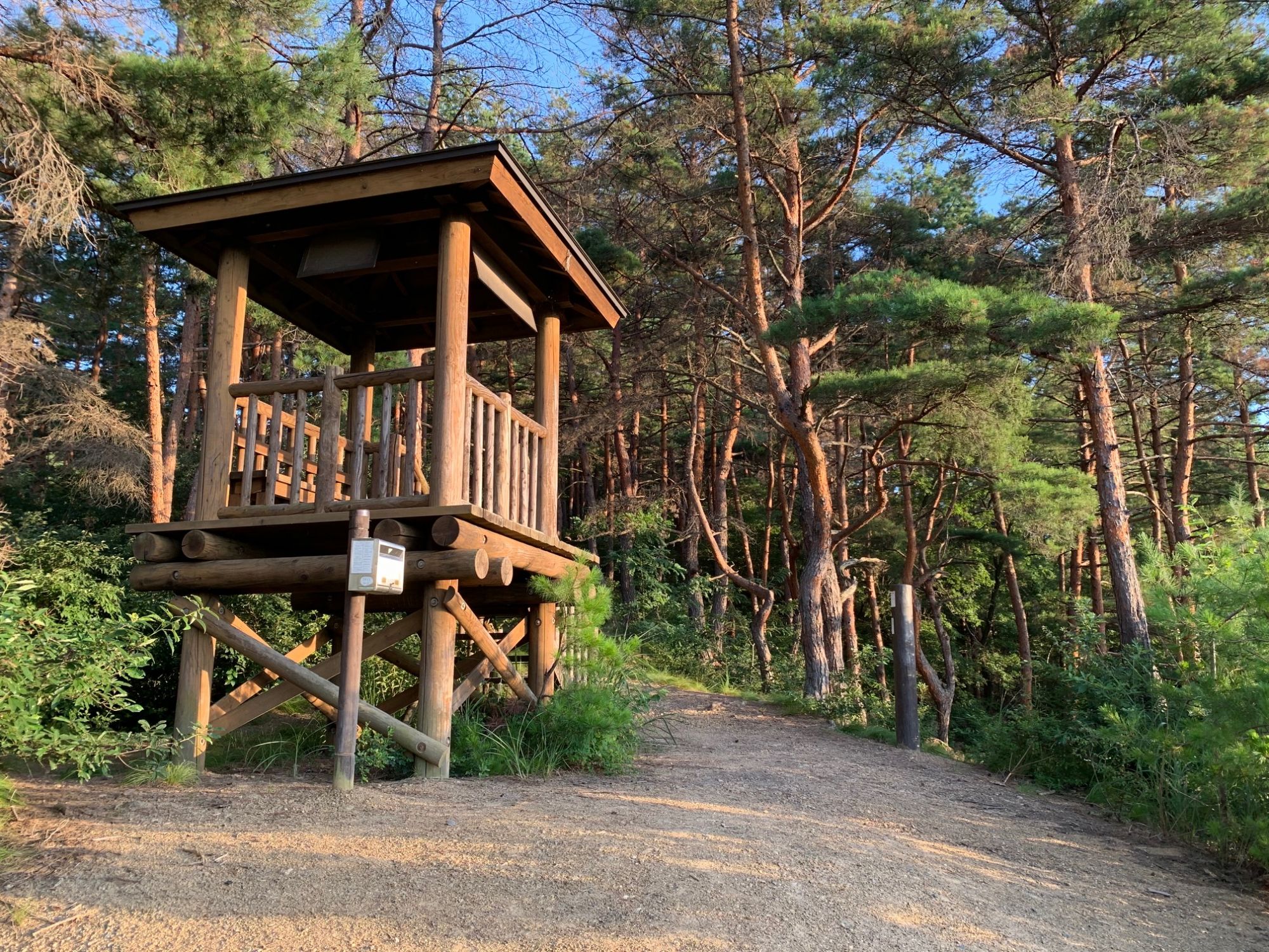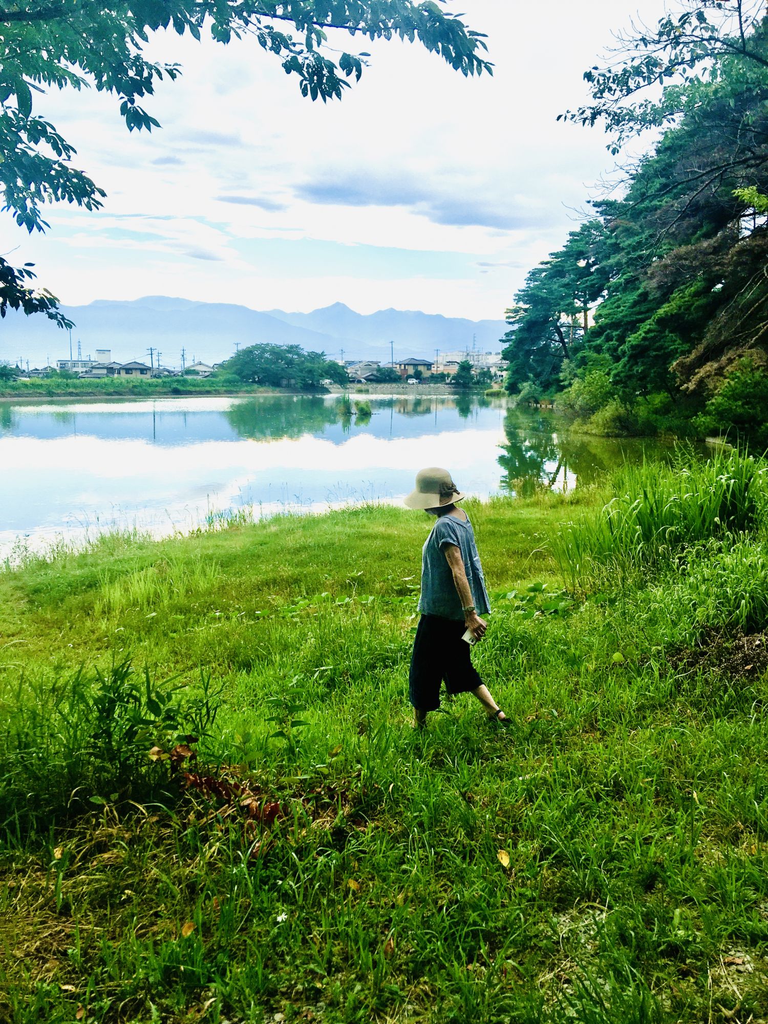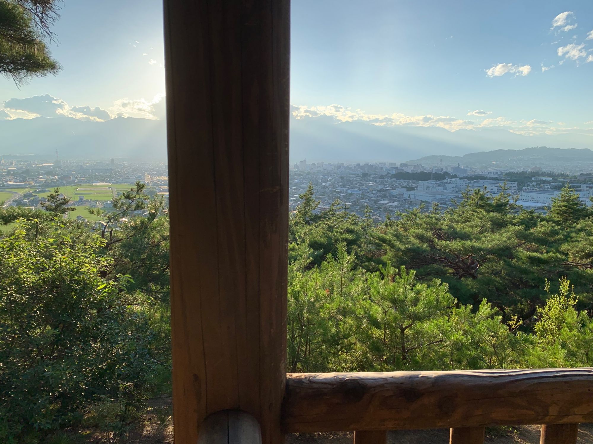 An der recht stark befahrenen Autostraße macht ein leuchtend rotes Schreintor auf sich aufmerksam und signalisiert den Eingang in die grüne Oase mit schönem Teich. Es gibt einen ziemlichen grasigen Weg um den Teich herum sowie einen nicht allzu anstrengenden Wanderweg auf den Chikato-Berg hinauf, wo sich das Schrein Hauptheiligtum befindet, dass 2018 zum Kulturerbe der Stadt Matsumoto ernannt wurde. Von hier oben hat man eine tolle Aussicht auf den Chikato-Teich und die umliegende Alpen-und Hügellandschaft.