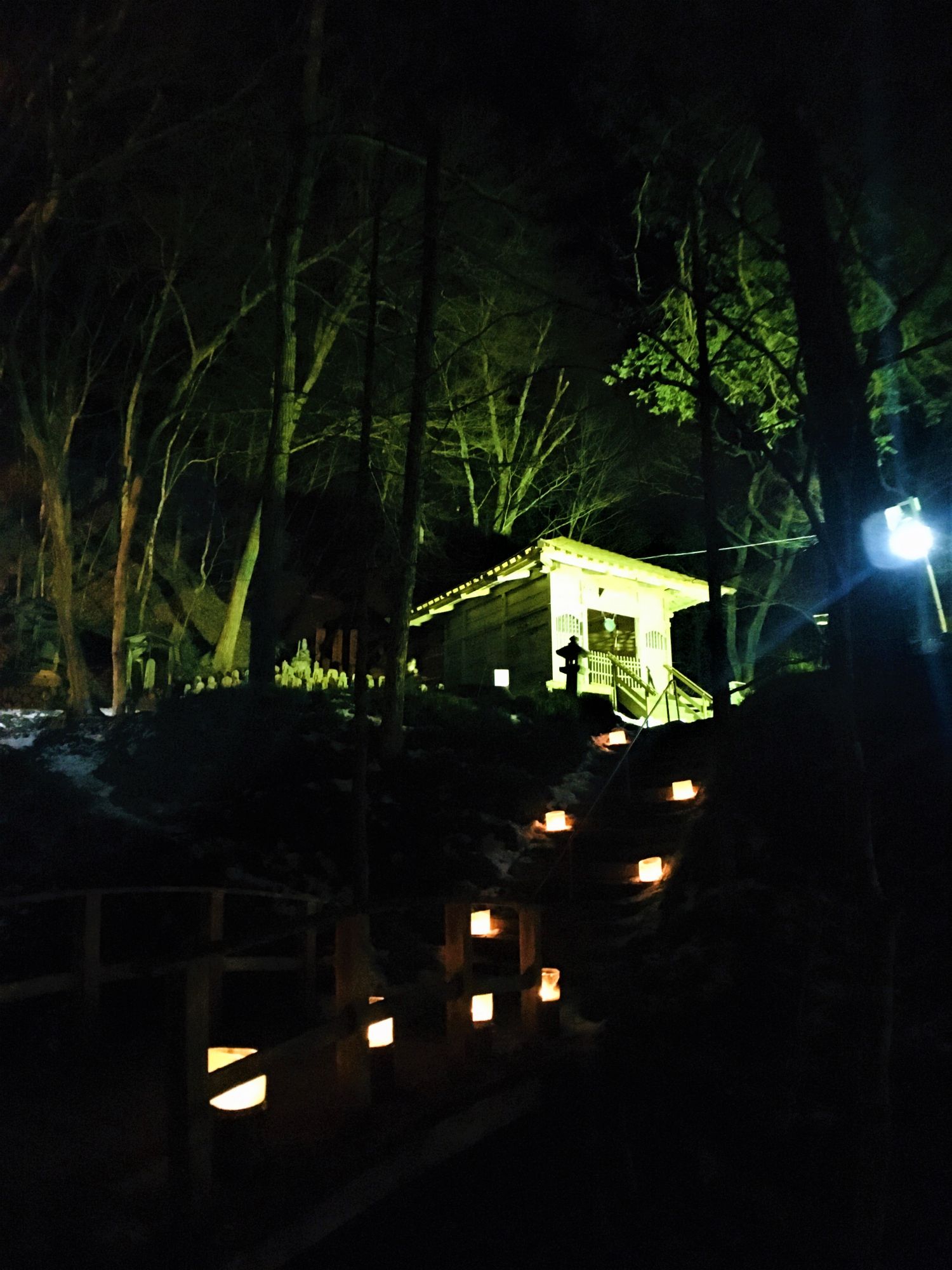 Jede Nacht von Ende Dezember bis Ende Januar werden etwa 200 Eislaternen rund um die Tempel Monju-do und Yakushi-do aufgestellt und angezündet. Eine wunderschöne Veranstaltung mit Blick auf den nächtlichen Winter, der durch die Kerzen etwas milder erscheint.
