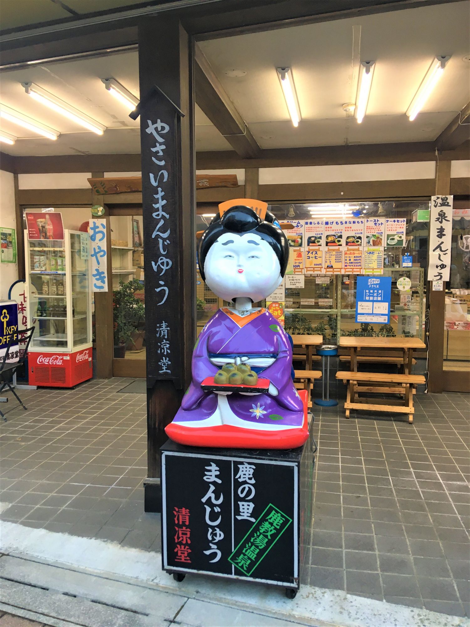 Die heiße Quelle soll einem Jäger von einem Hirsch gezeigt worden, weshalb das Onsen „Quelle, die der Hirsch lehrte“ heißt.