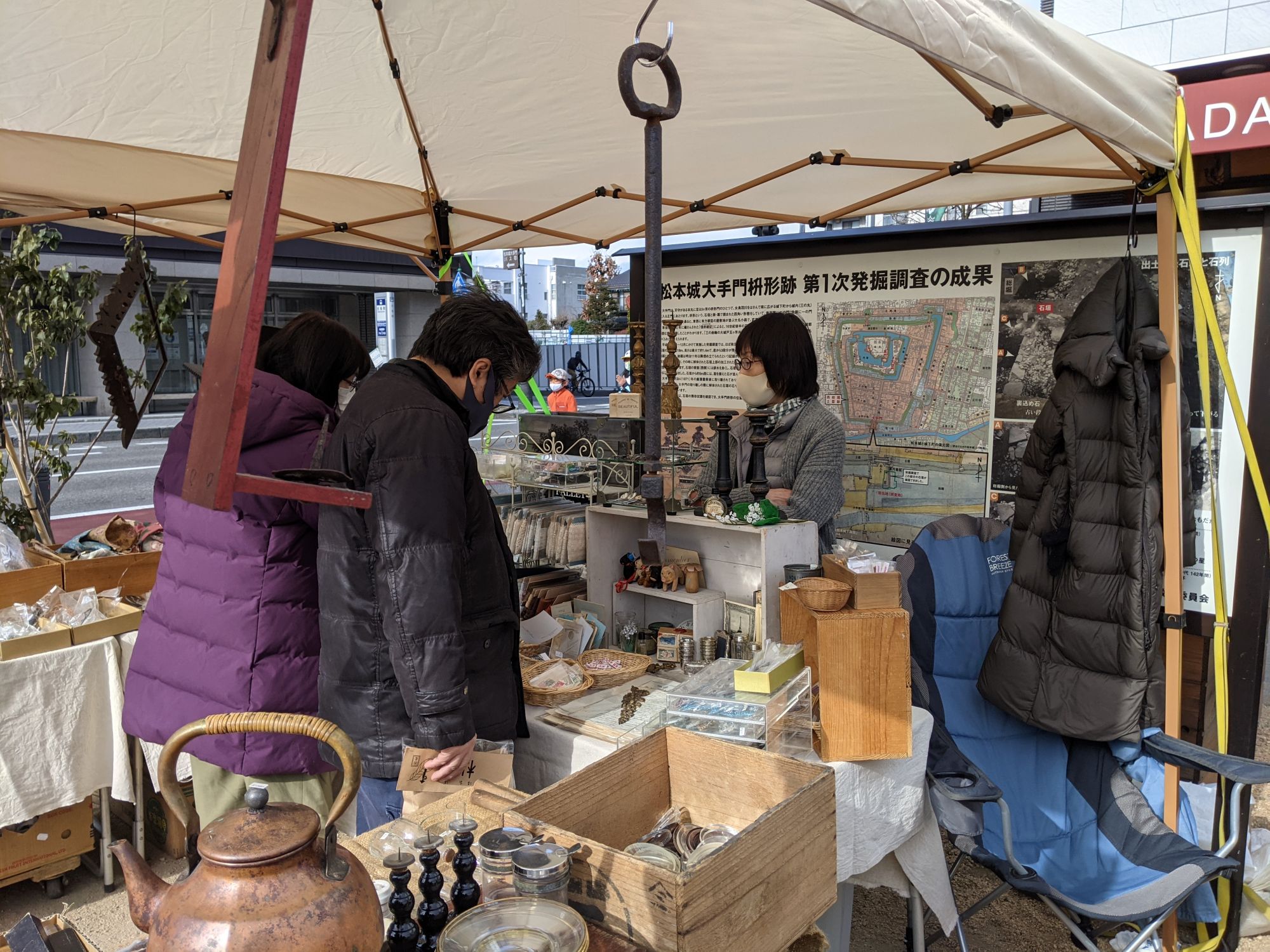Tous les mois se tient pendant le week-end un marché d’antiquités dans le centre-ville de Matsumoto. Habituellement organisé sur une journée, ce marché se tient sur deux jours pendant le mois de Décembre afin de célébrer les fêtes de fin d’année ! L’occasion de découvrir de nombreuses pièces d’antiquités, souvent d’origine européenne et américaine, mais aussi l’occasion de découvrir un marché de noël version Japonaise !