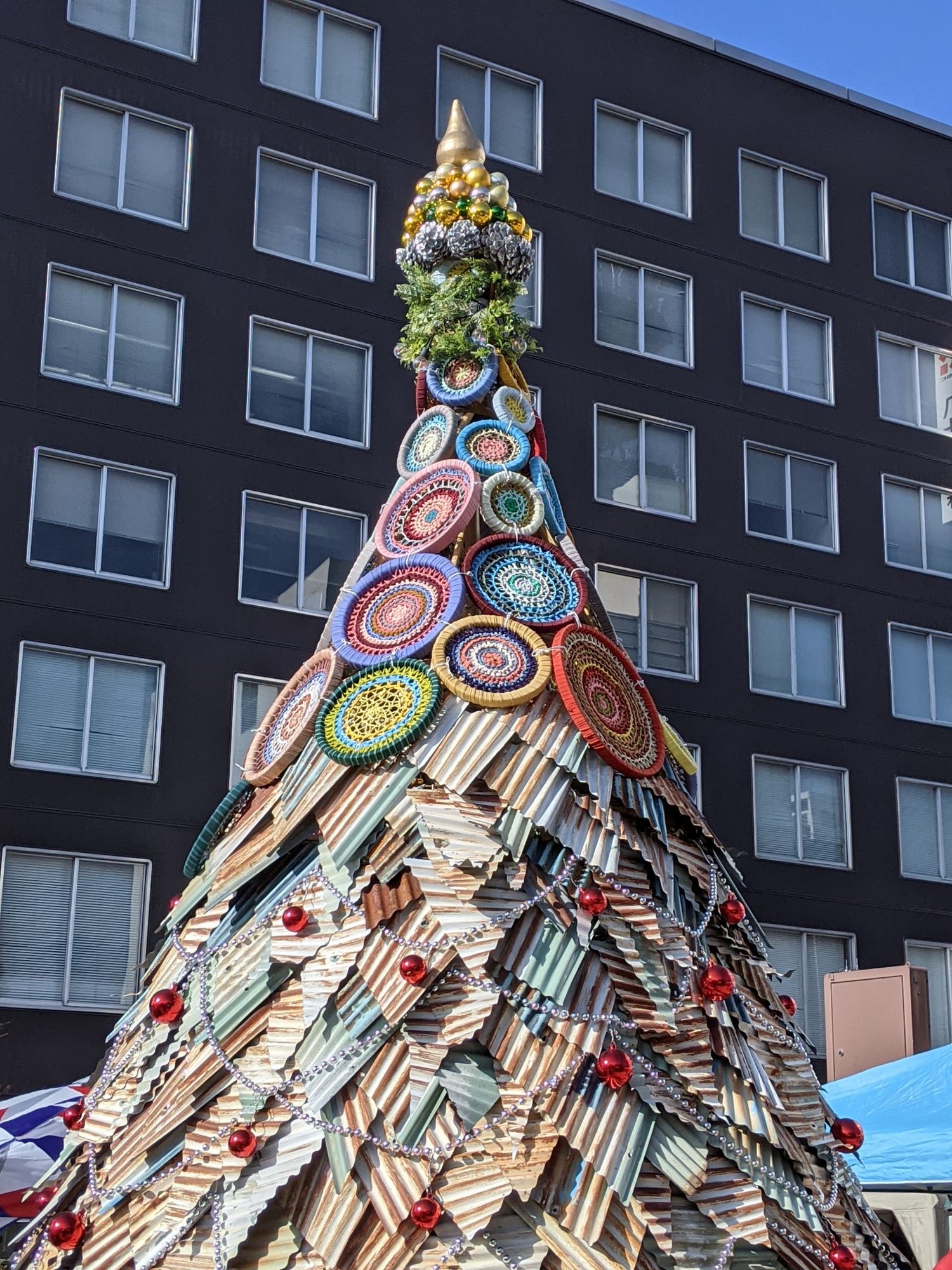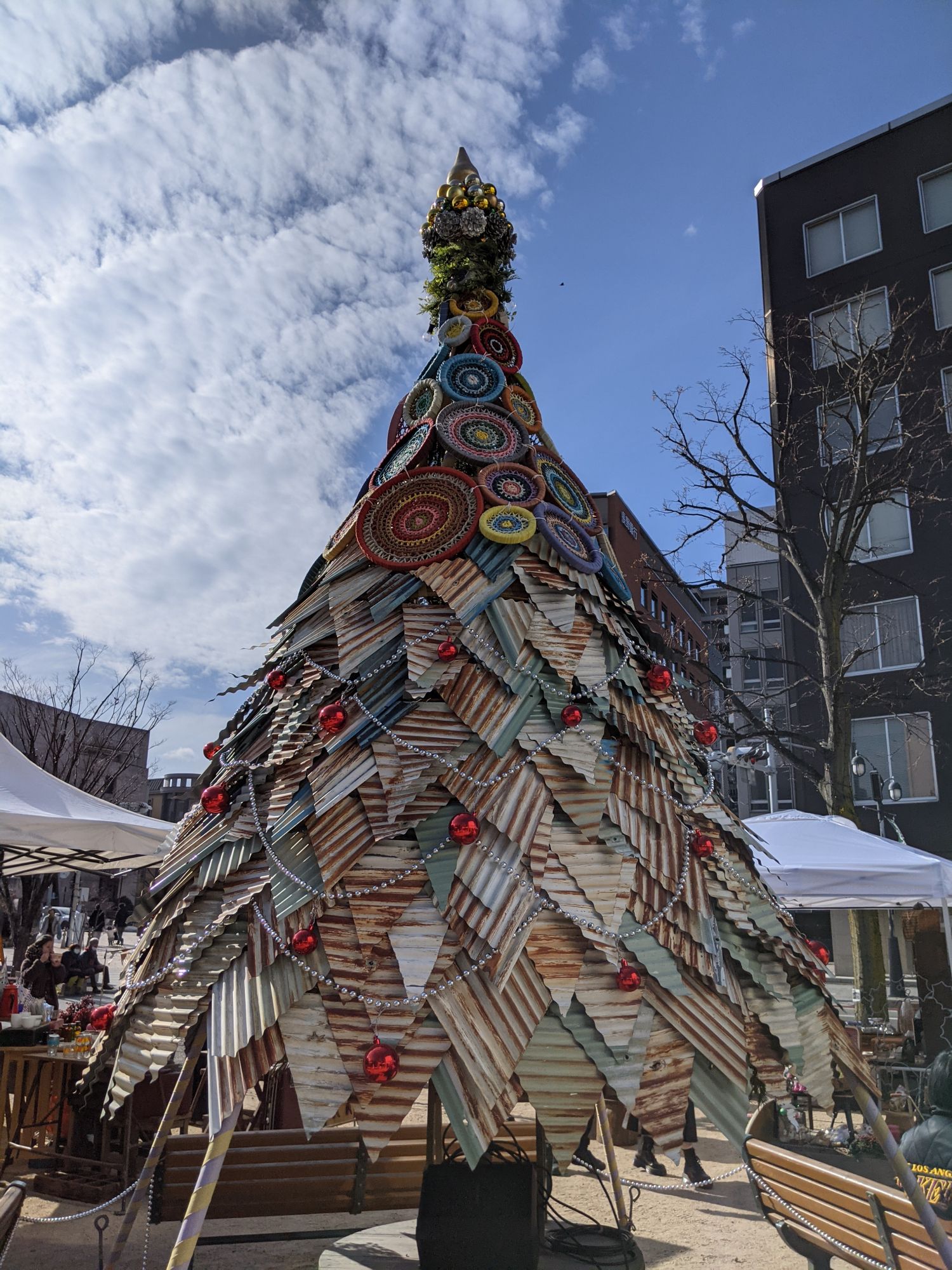 A cette occasion se dresse au milieu du marché un arbre de noël assez atypique ! Cet arbre de noël est une création originale de « Hidari-Kiki Creation » dont je vous laisse découvrir leur travail via leur site internet en cliquant ici.