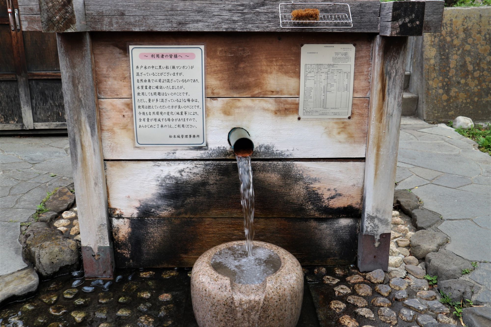 松本城総掘り埋め立て後にブクブクと自噴していた湧泉を地元北馬場の人たちが努力して整備し井戸にした。