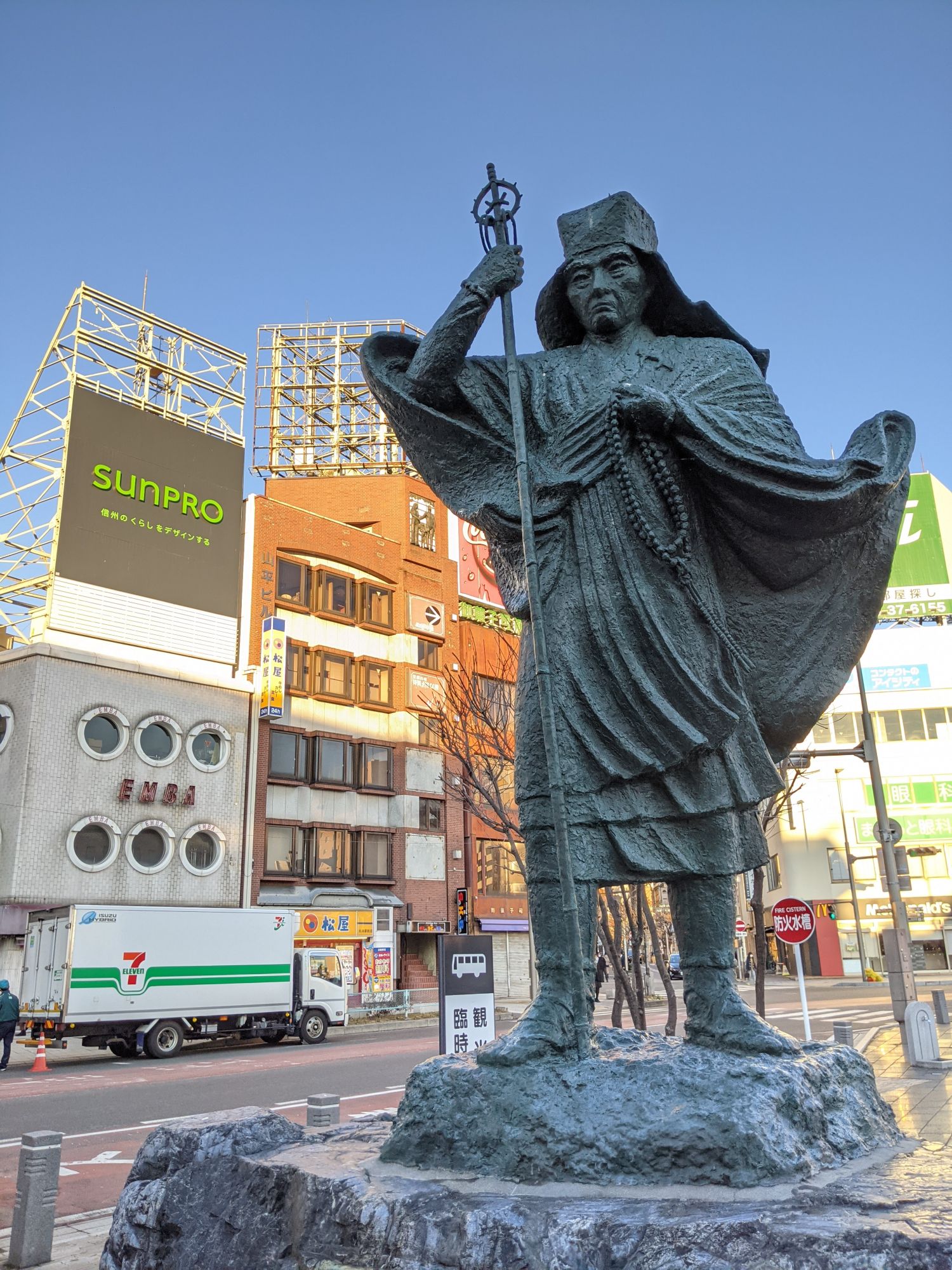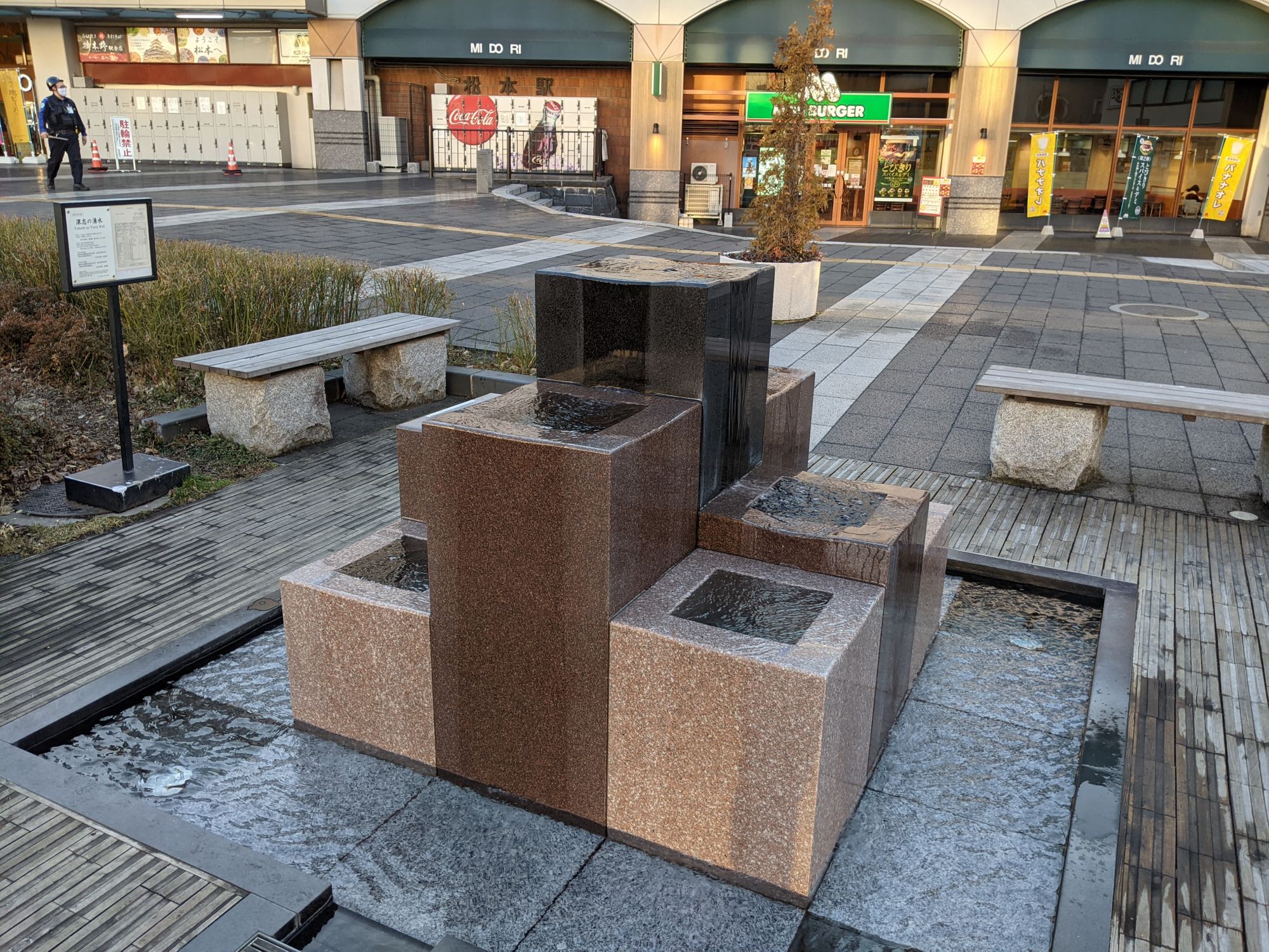 Devant la gare se trouvent aussi de nombreux points d’intérêts historiques et culturelles. Ainsi, vous y croiserez par exemple l’un des très nombreux puits d’eau de source naturelle qui jalonnent la ville (l’eau y est potable !). Mais aussi la statue de l’alpiniste à qui l’on doit la renommée mondiale des Alpes Japonaises.