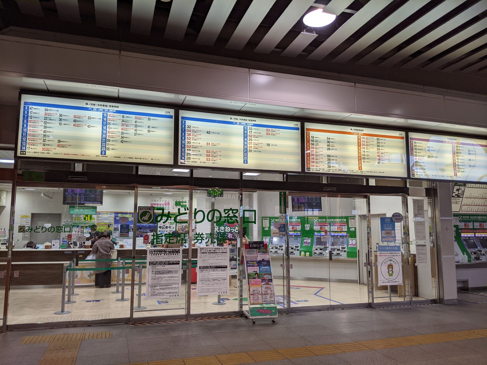 La Gare de Matsumoto n’est en aucune mesure comparable aux grandes gares du pays (notamment la gare de Shinjuku !). Il s’agit en comparaison (toute relative) d’une très petite gare dans laquelle il sera difficile de se perdre. Elle a par conséquent l’avantage d’être facilement parcourable et ne nécessitera pas une marge de temps importante pour y trouver votre chemin !
